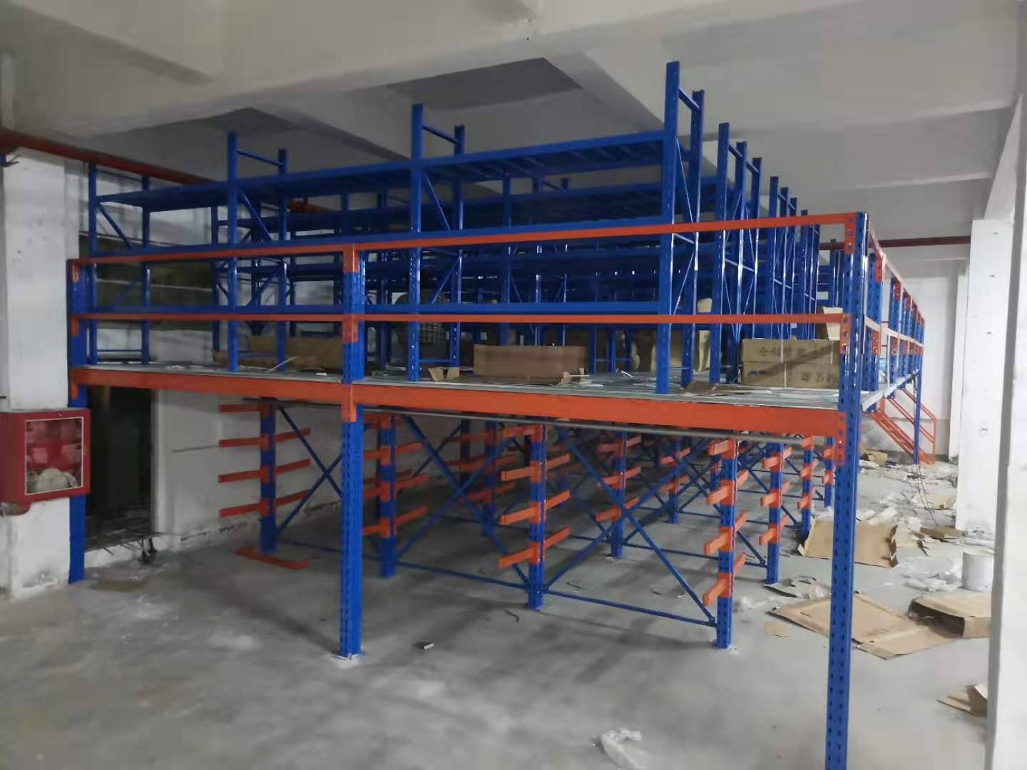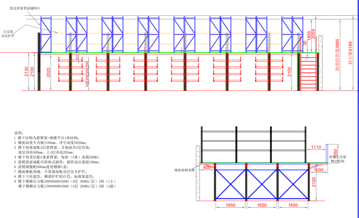 1、樓下結構為懸臂貨架+閣樓平臺一體結構